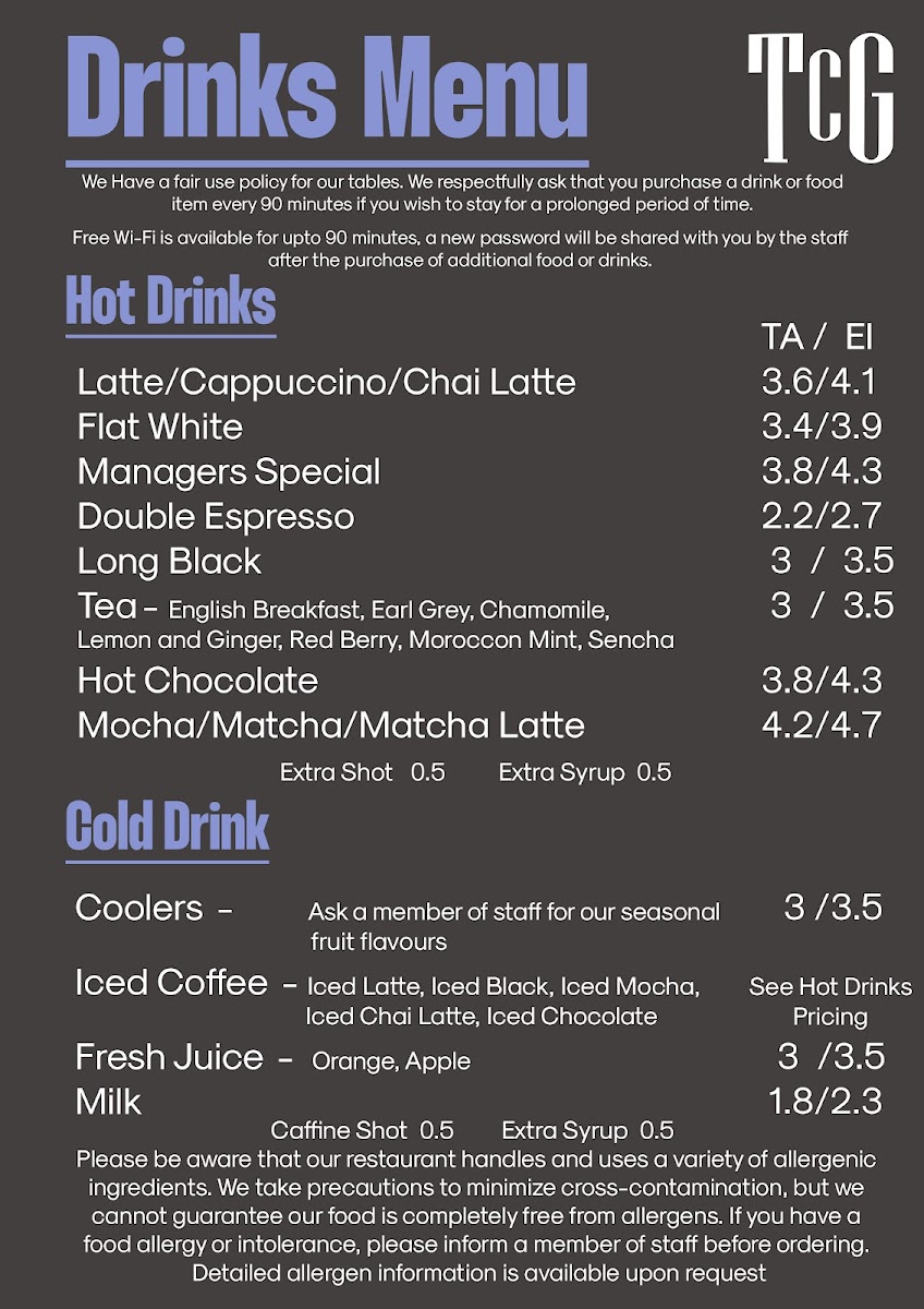 Food enthusiasts can indulge in the popular avocado toast or the savory rosti topped with crispy bacon or eggs, both priced at £8.00. Don’t miss the spiced chickpea roll and delectable TCG brownie for a snack on the go.